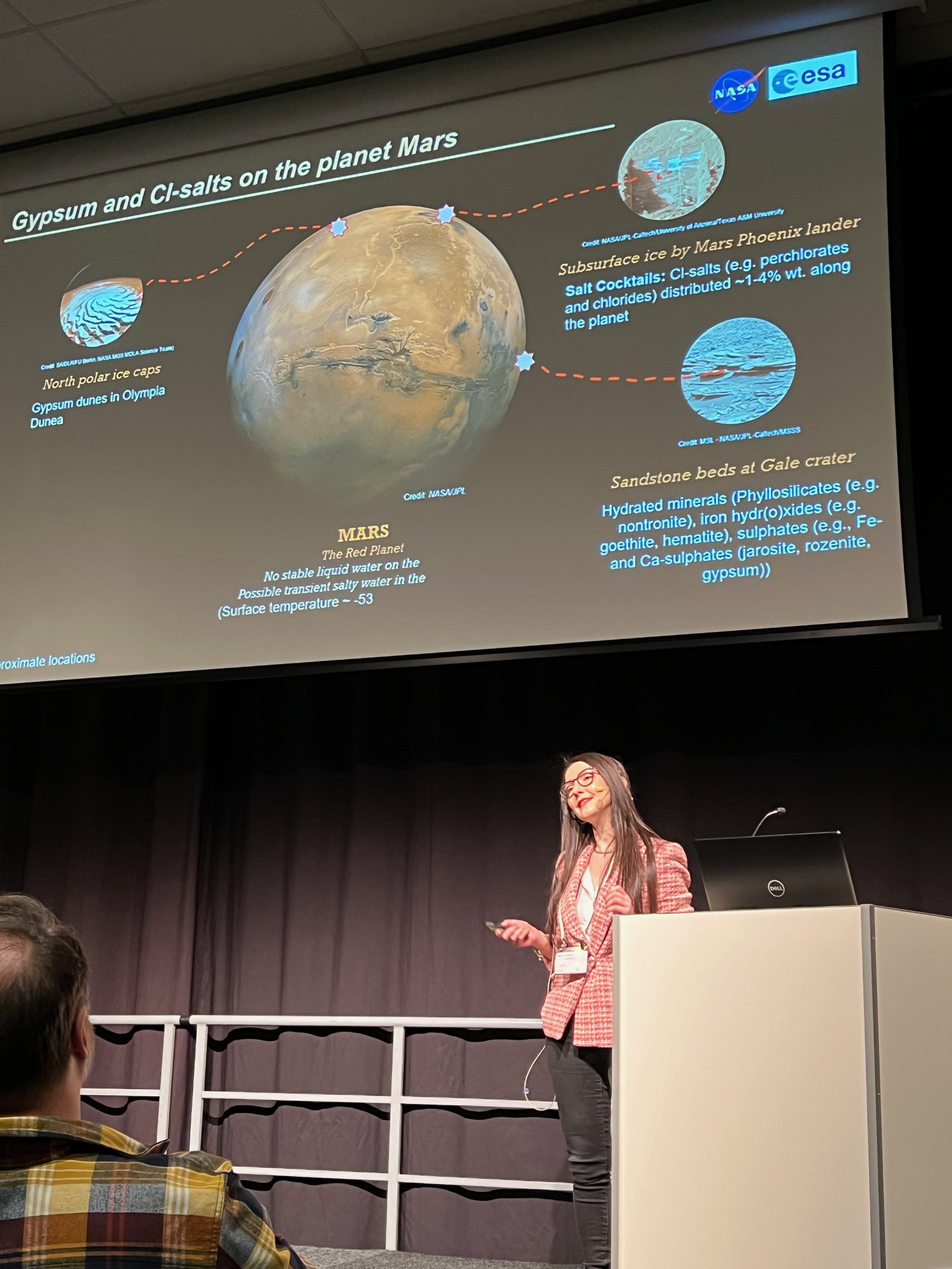 Inside the Mässen Centre at the NGWM meeting. Our group leader, Merve gives her talk about enigmatic detection of Ca-sulphates in Mars.